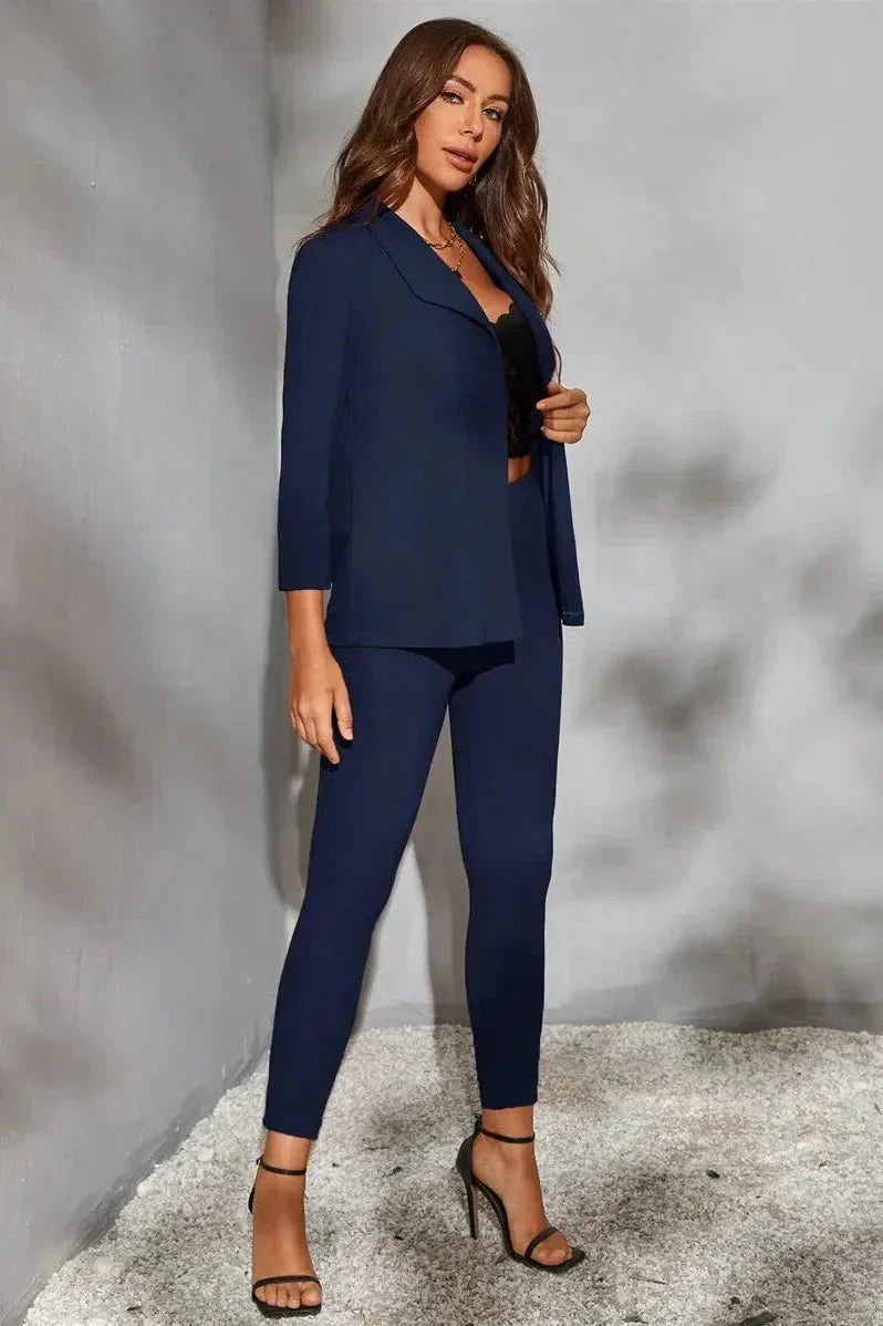 Mathilde | Sæt redefinerer professionel elegance med en moderne tilgang. Den lange asymmetriske overdel bærer subtile lynlådsdetaljer, der bevarer en skarp silhuet, mens matchende slimbukser følger kroppen uden at hæmme bevægelse. I en dyb marineblå nuance kombinerer sættet letvægtskvalitet med fremragende drapering og komfort i kølige sæsoner. Håndværket kommer til udtryk i hver søm og detalje, hvilket sikrer lang levetid og arvbar kvalitet. Tilgængeligheden er begrænset i udvalgte kollektioner—Mathilde | Sæt bærer dermed en ægte samlerappel og en tidløs værdi for klædeskabet.