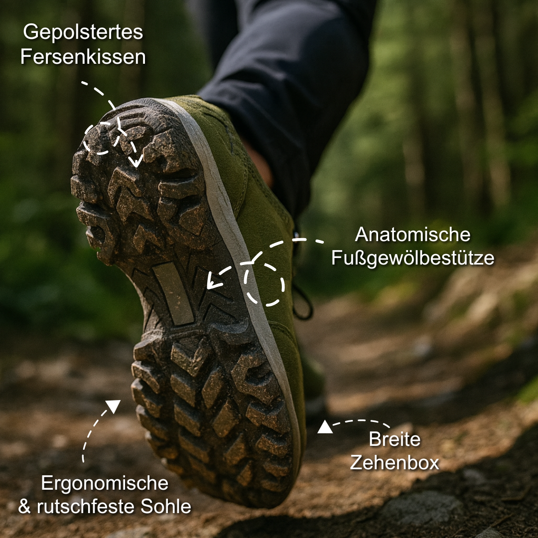 Er du nødt til at afbryde vandreture eller længere gåture, fordi dine fødder, ben og ryg gør ondt? Du er ikke alene. Især personer med Plantarfasciitis, Fersensporn og Hallux valgus bliver ofte kraftigt begrænset i deres dagligdag af dette. Det store problem: De fleste vandrestøvler klemmer foden, er meget stive og forværrer som regel kun smerterne.